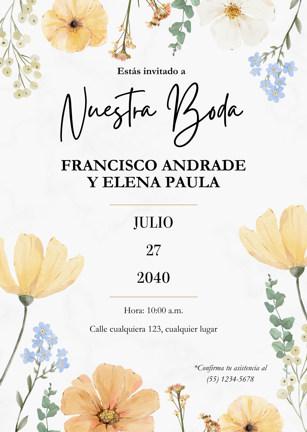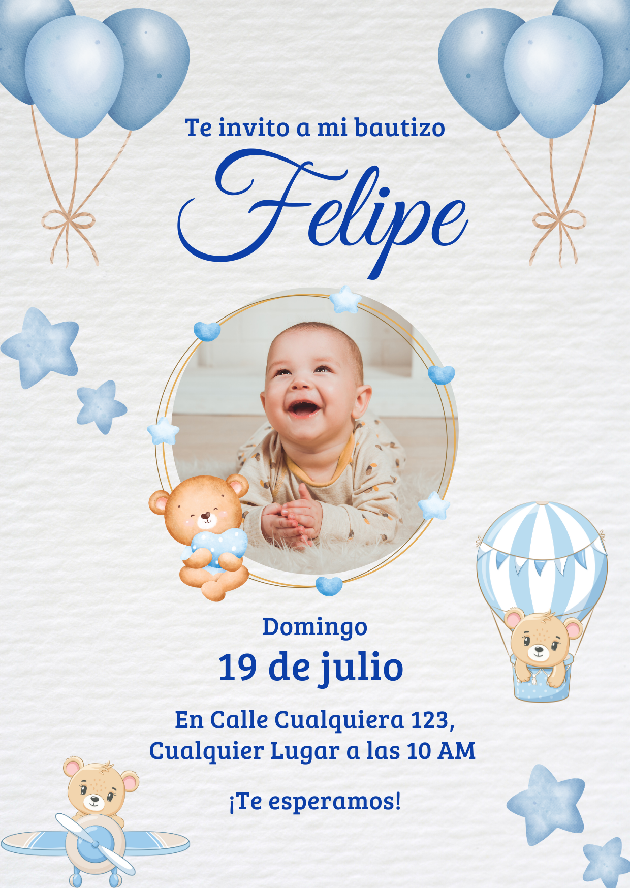 Necesitamos los detalles de tu evento (fecha, hora, lugar), tus preferencias de estilo y colores, fotos que quieras incluir, y cualquier texto especial. Te guiamos en todo el proceso.
